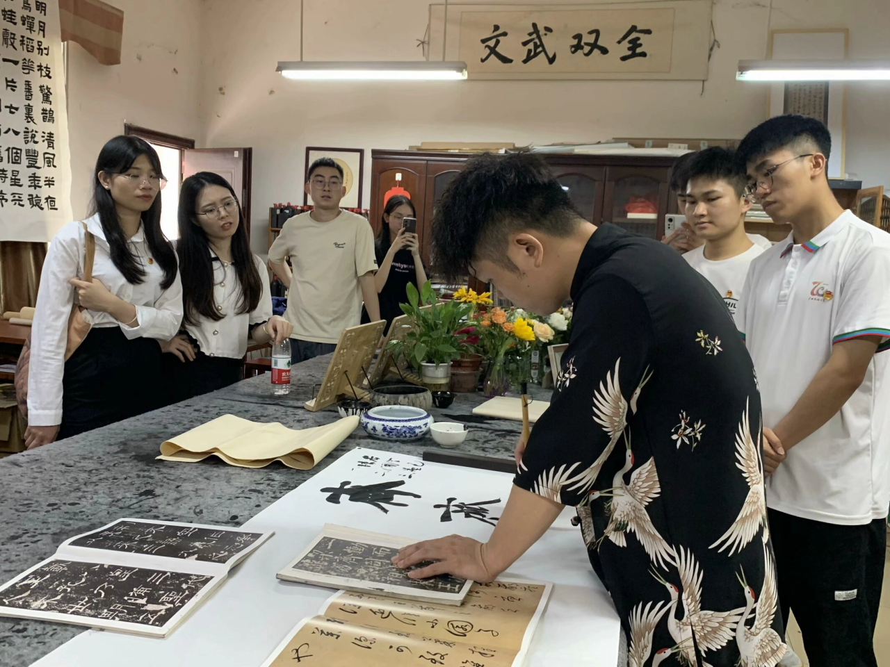 会后,广西文联机关团支部还到我院书法社进行书法创作指导。