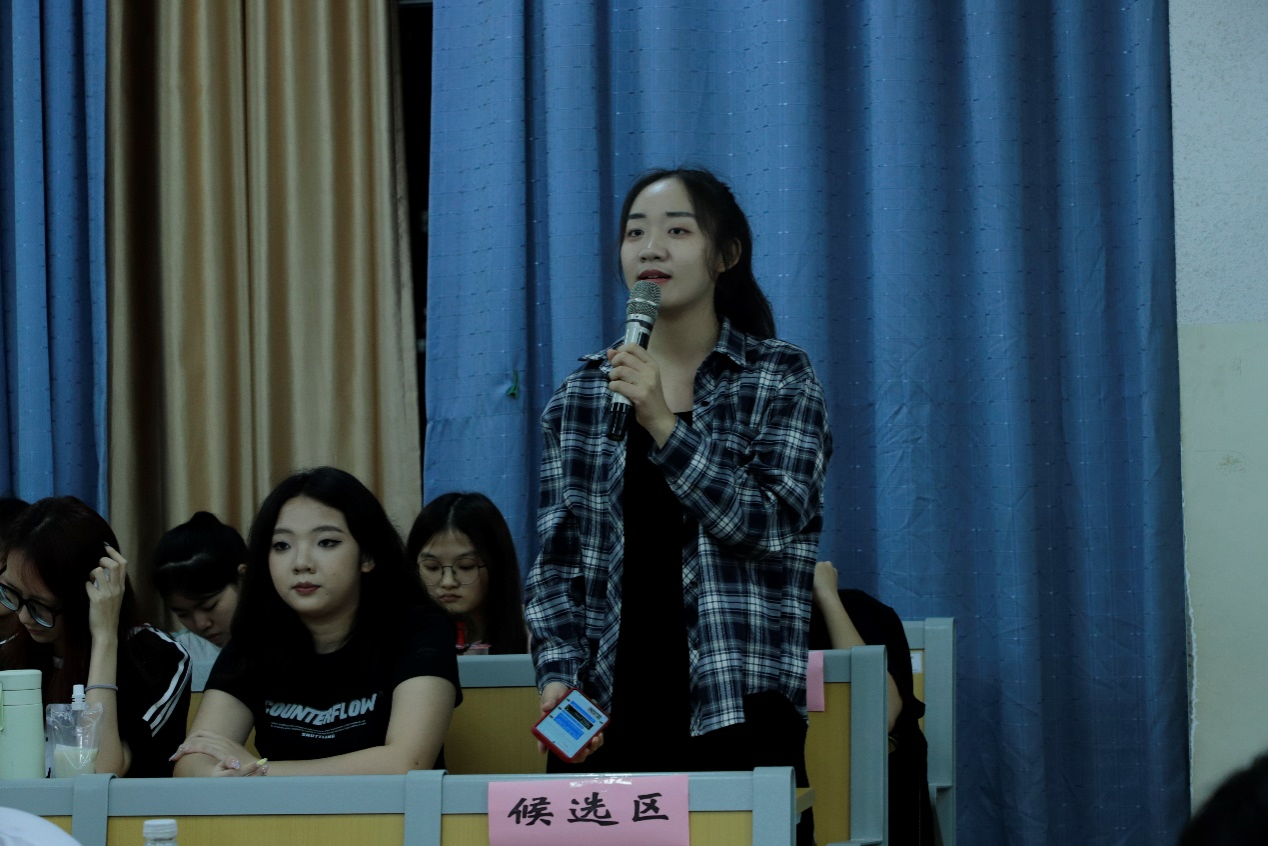 28日晚,新闻部副部长梁雪儿竞选团委第二副书记一职,她结合个人优势与部门工作特点两方面进行演说并阐述工作设想。她认为,团委第二副书记负责分管宣传部与新闻部,需要良好的协调能力、敏锐的洞察力与审美能力。她表示,如果能够竞选成功,自己将不断提高自身的综合素质,增强责任意识,配合老师做好上传下达的工作,提高团委学生会的工作效率。