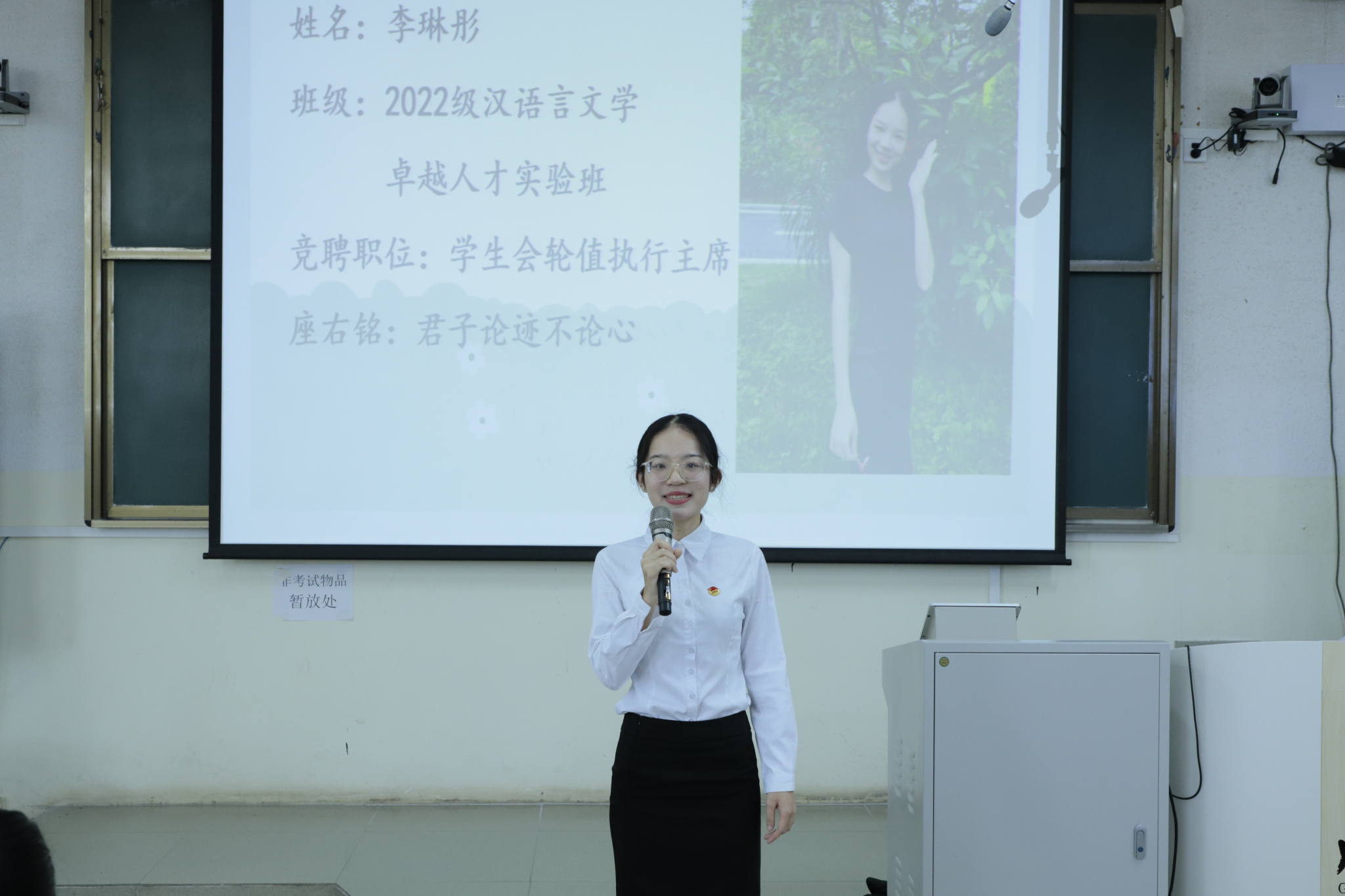 本次换届竞聘会包括常委委员、主席团成员竞聘会和部长竞聘会两场进行。分别由自由演讲、评委提问和民意测评投票三个环节组成。会上,各竞聘者依次上台,从个人简介、岗位认识、工作设想等内容展开演说和应答