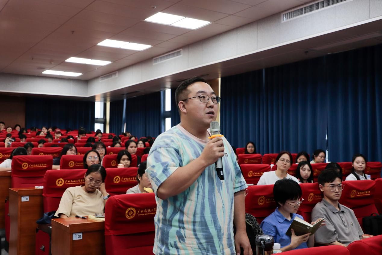 邓国彬致辞,热烈欢迎各位作家,对“广西文学周”名家进校园活动在广西民族大学召开深感荣幸,并介绍广西民族大学办学历程,提及明升体育88中国语言文学专业。广西民族大学始终以铸牢中华民族共同体意识为主线,落实立德树人根本任务,积极服务国家战略。学校强调培养理论研究和创作实践相结合的文学通识教育特色,建立“相思湖作家群”,汇聚一批批有成就或热心文学人才培养的作家、诗人、评论家和教师,在广西乃至全国文坛产生了广泛影响。邓国彬还表示,希望以此活动为契机,持续推动广西民族大学理论研究和创作实践相结合的文学通识教育发展。