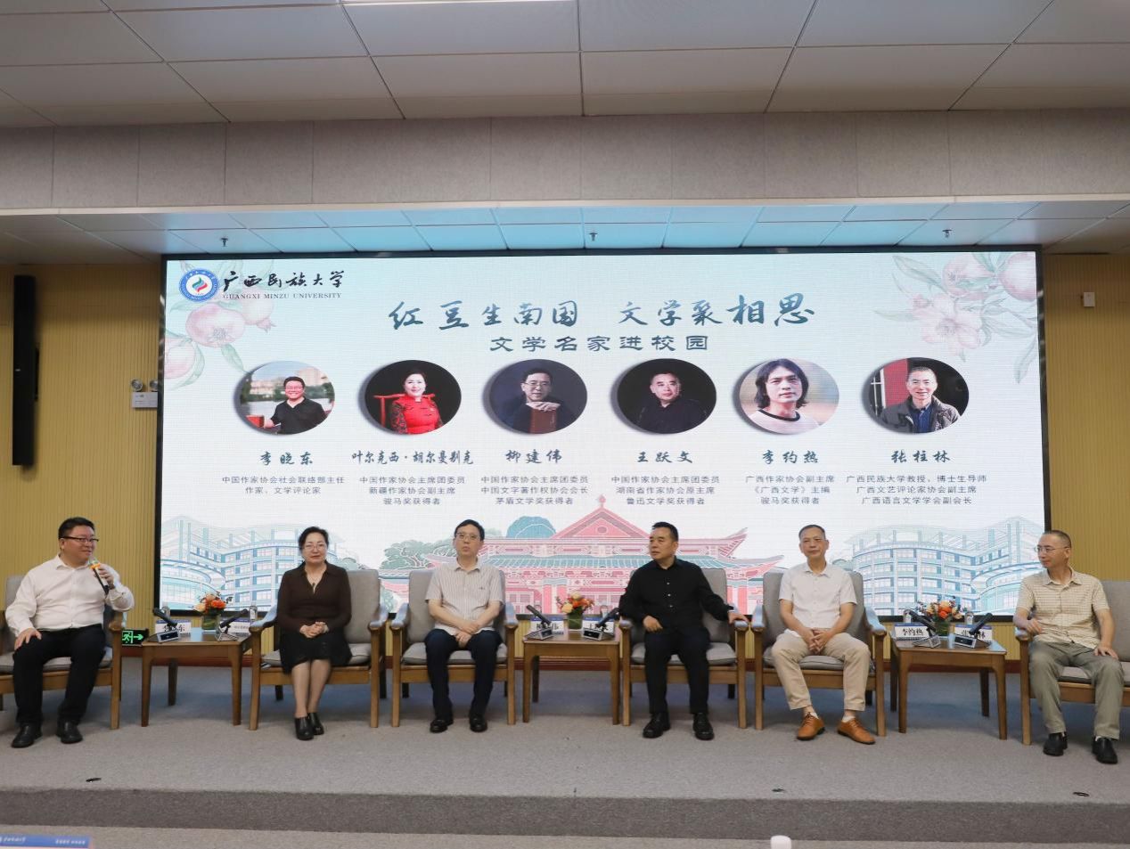 齐聚相思,共话文学。11月14日,“2024中国文学盛典·骏马奖之夜”系列活动之“广西文学周”文学名家进校园活动在广西民族大学相思湖校区举办。柳建伟、叶尔克西·胡尔曼别克、李晓东、王跃文、李约热、张柱林六位文学名家畅谈文学创作,描绘文学风景。