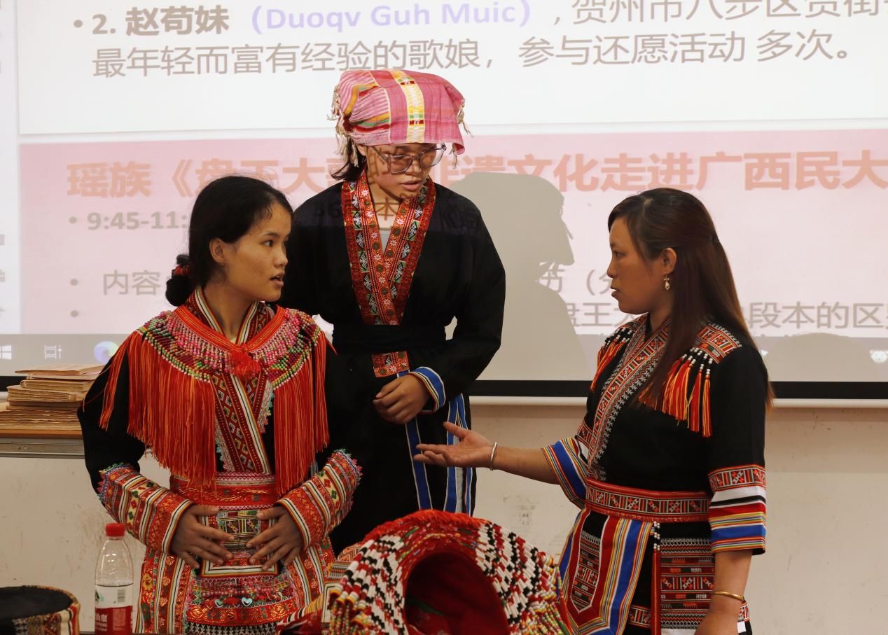 赵苟妹讲解尖头瑶传统服饰(右一)