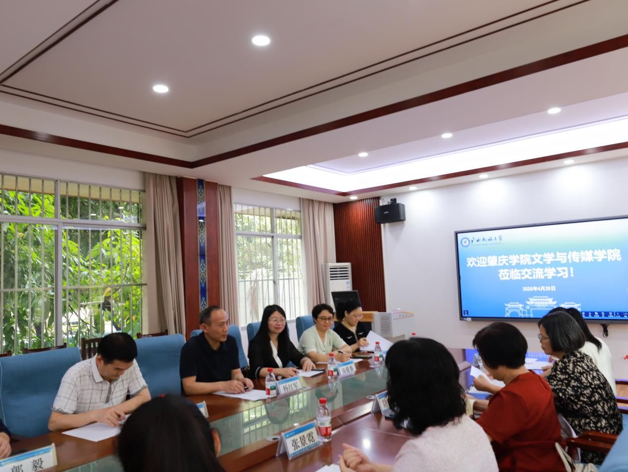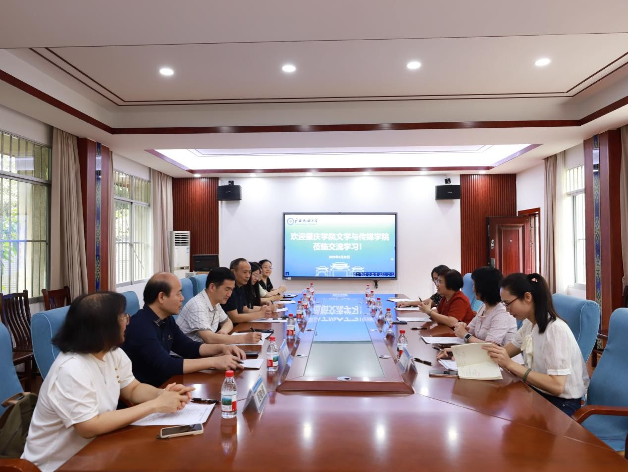 4月24日上午,明升体育88党委书记陆晓芹和教师代表张景霓、范秀娟等热情接待了肇庆学院文学与传媒学院院长杨红军、副书记胡海鹏、副院长陈爱香等一行7人到访,双方就研究生教育、学科建设等问题进行了深入的交流。