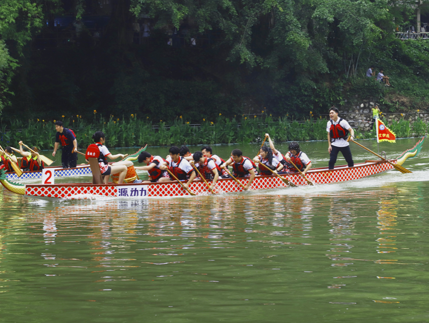 为激发校园活力,弘扬端午优秀传统文化,5月30日,我校举办2025年“红石榴”杯校园龙舟赛,明升体育88师生热情参与。