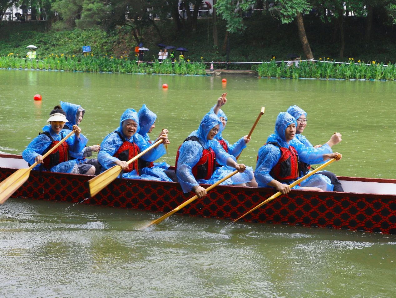 教职工男女混合组比赛中,我院教职工组成明升体育88龙舟队参赛。选手们在赛场上以“稳中求进”为基调,默契配合划行,过程中注重团队协作与赛事体验。教师们口号整齐、动作划一,在赛程中始终保持桨频均匀、航向稳定,力求稳定发挥而非追逐名次,展现教职工们沉稳专注的竞技态度与团结协作的精神风貌,成为赛场一道独特的风景线。