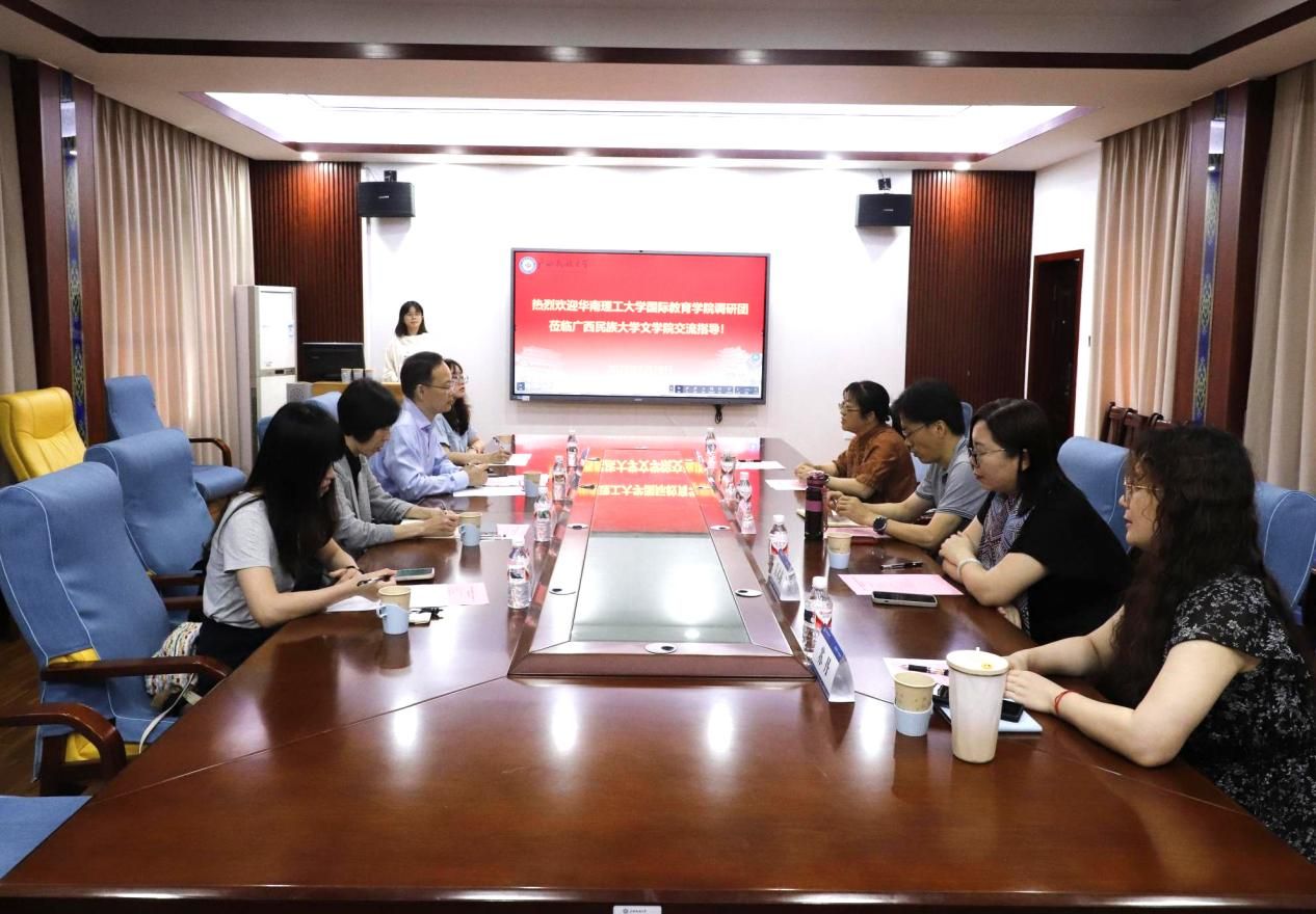 为增进两校之间的交流与合作,进一步推进来华留学生教育事业的发展,5月29日上午,我院与华南理工大学国际教育学院在博文楼204会议室成功举办了座谈交流会。华南理工大学国际教育学院副院长潘俊,汉语教研室讲师卜佳晖、教务员谢欣怡、行政秘书许月明,以及我院副院长何山燕,汉语国际教育教研室主任任连明及吴术燕、苏丹等老师出席了此次交流会。