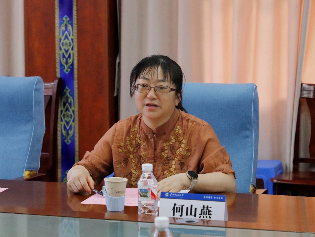 座谈会上,广西民族大学明升体育88副院长何山燕介绍了学院的基本情况。她指出,明升体育88历史悠久,学科建设成果丰硕,已构成完整的中国语言文学本、硕、博人才培养体系;学院积极响应“一带一路”倡议,在民族语言传承保护及具有东南亚特色的国际中文教育领域成效显著,并与多个东南亚国家建立了长期合作关系。