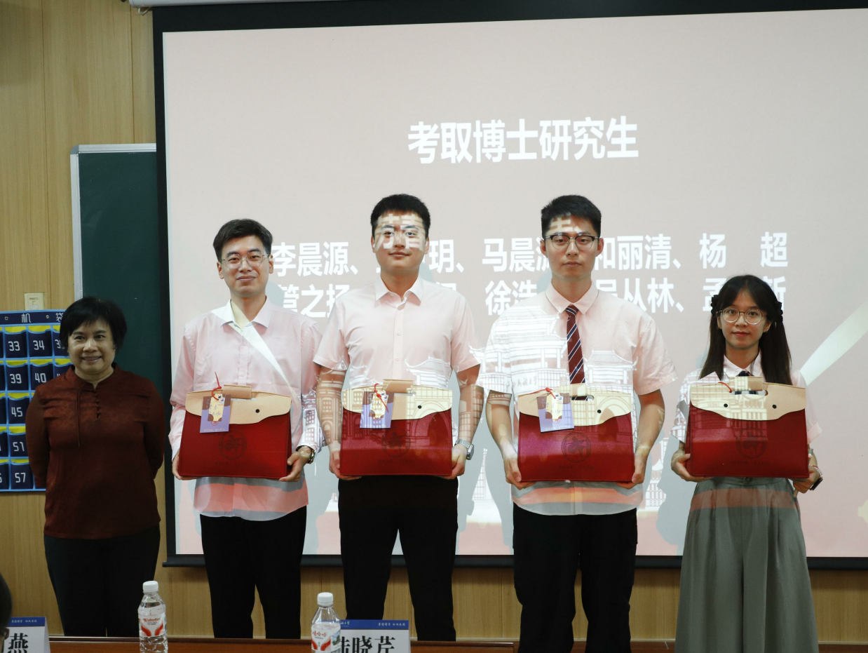 考取博士研究生毕业生代表与老师合影留念