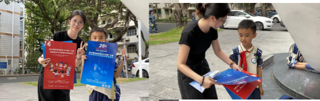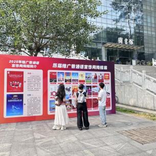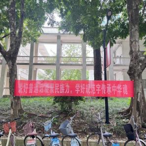 活动内容涵盖图文展板展示、vlog短视频宣传、宣传海报发放,以及线下知识问答互动等多种形式。活动期间,基地在图书馆前设置主题图文展板,展出历届推普周的珍贵海报,以时间轴形式向师生呈现普通话推广历程。在教学楼、五坡食堂等人流密集区域发放推普周宣传海报,悬挂“说好普通话凝聚民族力,学好规范字传承中华魂”“加大国家通用语言文字推广力度,促进铸牢中华民族共同体意识”的横幅标语,形成“抬头可见、驻足即学”的宣传效果。