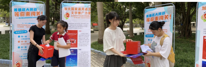 今年9月的第三周是第28届全国推广普通话宣传周(以下简称“推普周”)。为响应国家推广普通话的号召,践行“加大国家通用语言文字推广力度,促进铸牢中华民族共同体意识”精神,提升校园语言文字规范水平,国家语言文字推广基地(广西民族大学)开展了一系列推普活动。本次活动旨在通过沉浸式互动体验,让师生在真实交流场景中感受普通话的魅力,营造“说普通话、用文明语”的浓厚氛围,助力铸牢中华民族共同体意识。
