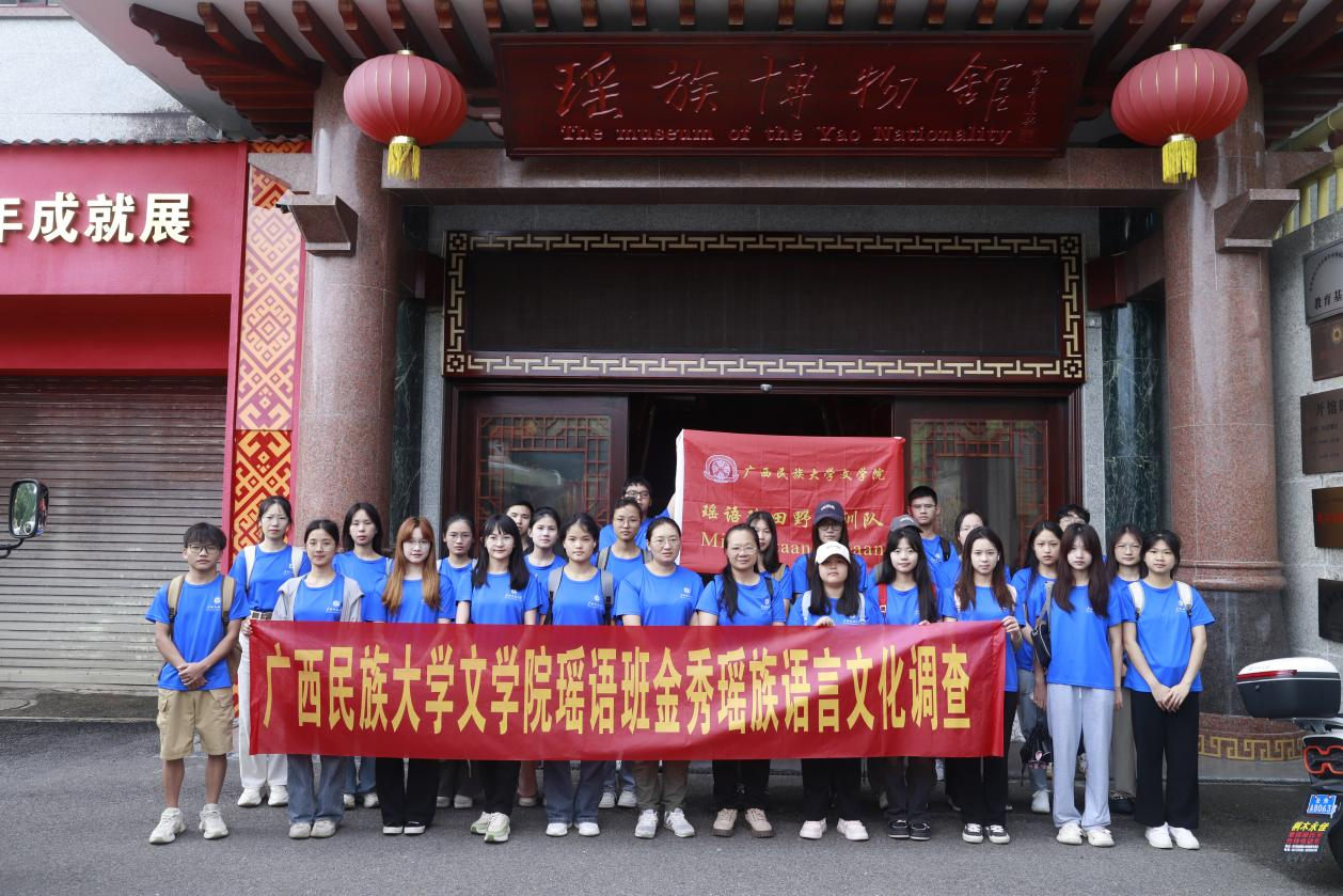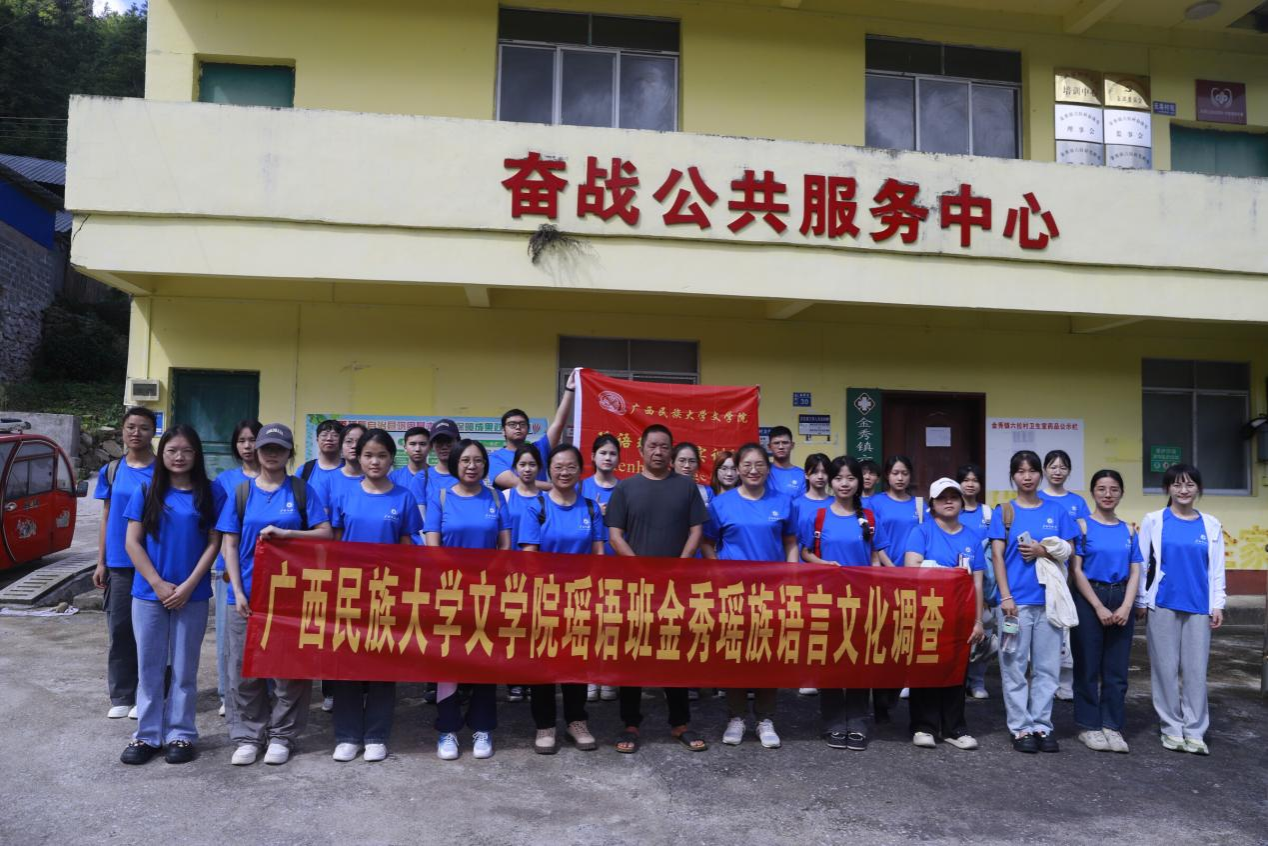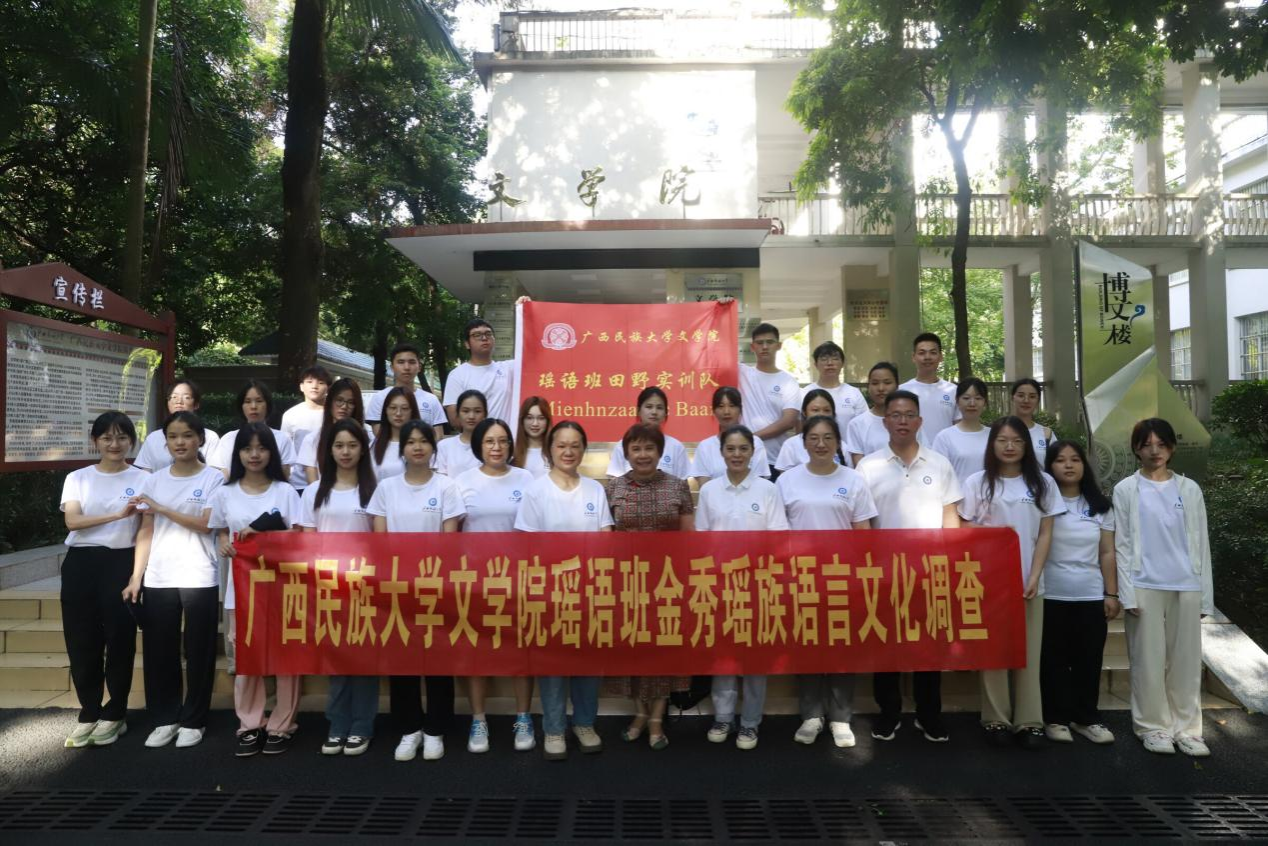 7月15日至7月26日,广西民族大学明升体育882023级中国少数民族语言文学专业瑶语班22名本科生在指导老师盘美花、石丽芳、俸娟秀及4名研究生助手的带领下,赴金秀瑶族自治县开展为期12天的田野实训。明升体育88党委书记陆晓芹教授予出发当日为实训队送行并寄以重托。实训期间,得到当地相关部门、村委的大力支持和村民密切配合,使实训队调研工作得以顺利开展。