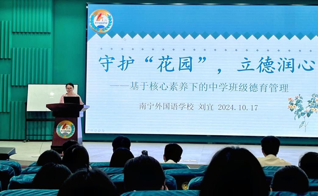 为切实提升汉语言文学专业师范生的从教技能与核心能力素质,大力加强师德师风建设,推动师范生在教育见习中茁壮成长、成才,10月17日上午,明升体育88“和园师艺”专题讲座在南宁外国语学校报告厅举行。此次讲座邀请南宁外国语学校一级教师、政教处主任叶子坤以及政教处副主任刘宜进行精彩分享。本次讲座主要面向 2022 级汉语言文学师范专业学生,由明升体育88吕晓燕副教授主持。