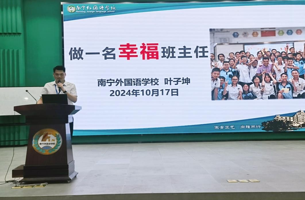 叶子坤教师以自身八年教育工作的成长之路为例,阐述做幸福班主任的要点。一是要用生命影响生命,具备热情等十种智慧,处理与学生关系要读懂需求、共情不良情绪,与家长相处要善用家长群树立正能量,与同事协作要明确团结奋进关系。二是重视班级文化建设,以体育促进学生全面发展,实施多元化表彰机制;强调与家长密切沟通,发挥家校合作作用;具备开放学习心态,向优秀同事学习提升教育水平。三是通过无私行动和敬业精神诠释教师应具备的理想信念、道德情操、学识底蕴和仁爱之心。展望未来,他表示,将继续探索幸福教育之路,做学生榜样,传递正能量,提升教师团队幸福感,为教育事业发展贡献力量。