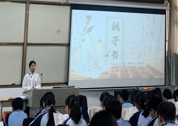 实习生教学汇报环节,实习教师李慧倩深入挖掘教材《诫子书》,别具匠心设置理文意、拆家书、传家风三大教学任务,逐层深入开展教学,驱动学生自觉关注本课文言知识、思想内容、情感内涵。课堂上同学们积极朗读、踊跃互动,体现了李老师教学设计的精巧、教学方法的得当、教学技艺的进步与成熟。
