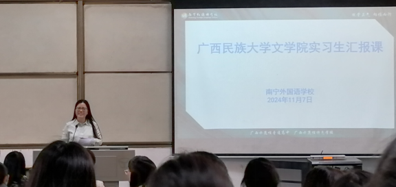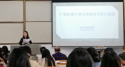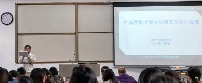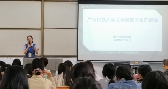 2024年11月7日上午,我院2021级师范生实习汇报活动在南宁外国语学校举行。此次活动旨在提高师范生的教育教学实践能力,为未来的教师生涯奠定坚实基础。我院2022级师范生秉持学习的初心,积极至南宁外国语学校参与见习。