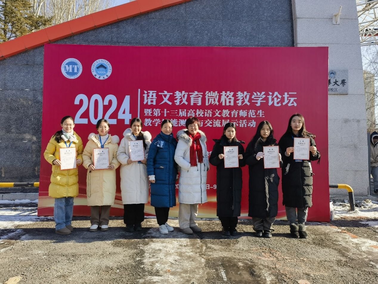 12月6日至9日,2024年全国语文教育微格教学论坛暨第十三届高校语文教育师范生教学技能测试与交流展示活动在吉林省吉林市北华大学举办。全国81所高校参加比赛,共513名选手参赛。经过与华中师范大学、东北师范大学、江西师范大学等高校学子的激烈角逐,我院学子刘雅妮荣获一等奖,吴映瑶、黄霞荣获二等奖,黄凯宁、梁晓艺荣获三等奖,邓立芳荣获优秀奖。