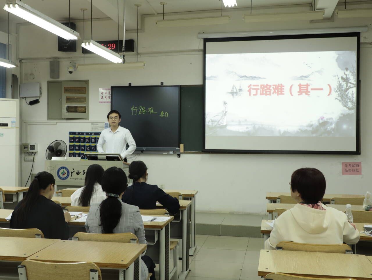 比赛分为中学语文学科初中组和高中组,参赛对象为明升体育88汉语言文学专业师范生,以抽签形式确定比赛顺序,展示内容涵盖教学设计、说课、模拟上课与板书展示三个环节,要求选手们在10分钟内进行展示。