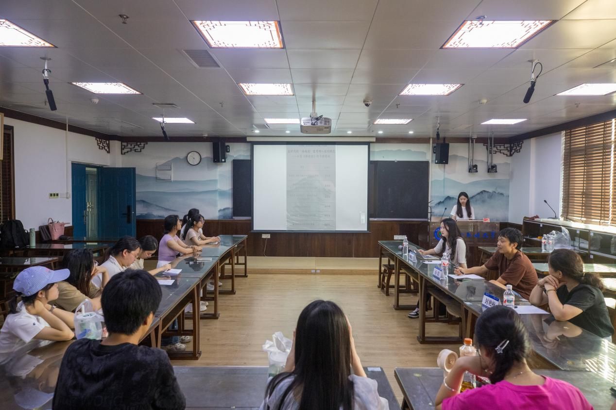 本次读书会有六位同学从不同角度对小说进行了深入解读。黄显媚以《“西南浪”的生态暴力与存在主义困境》为题,从介绍生态批评理论导入,通过解读“西南浪”作为自然暴力与命运暴力的双重意象,对比红树林的生存智慧(膝状根、种子自生)与人类在体制漩涡中的挣扎,从生态批评视角探讨自然现象如何成为人性异化的镜像。张奕安从后全球化的“南方性”生产出发,借助借助霍米·巴巴的“第三空间”理论,解释《西南浪》的文化混杂与身份认同问题。谢冰冰以“流动的半岛性与南方地理诗学”为探究方向,将德勒兹块茎理论与地理诗学相结合,探讨红树林、台风、西南浪等自然意象如何成为“去中心化叙事”的动力,以及疍民、越南华侨等边缘群体如何在流动中重构南方身份。徐子强以《创伤记忆的幽灵书写》为题,结合卡鲁斯(Cathy Caruth)的创伤理论,以李晓晨溺水事件为轴心,分析“棺材堵校门”“老校长楼道嘶吼”等场景中的集体创伤。胡艺凡从南方写作的文体实验出发,通过细读具有方言特色和独特叙事节奏的段落,分析小说中西南浪的流体叙事节奏与方言混杂带来的文本肌理变异。最后,赵籽彤以《当代知识分子的反抗与妥协》为分享主题,通过小说中“我”从愤怒到妥协的心路历程分析,探讨举报信事件、微信群骂战等情节中知识分子的“表演性反抗”,以及小说结尾“在西南浪中游泳”是否蕴含超越虚无的希望。