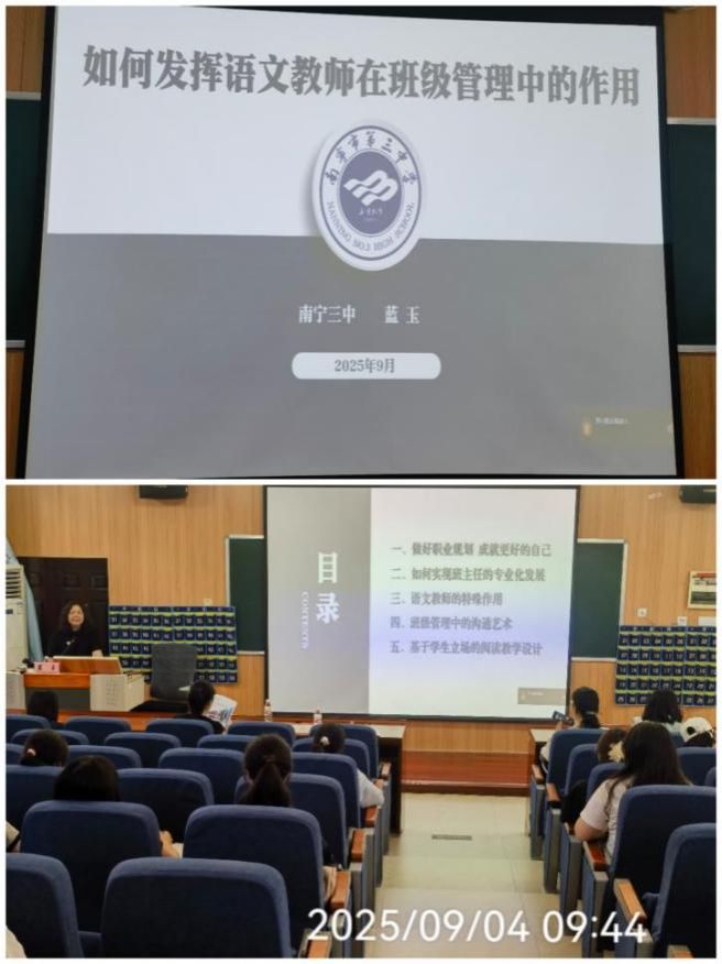 为深入落实师范生培养方案,推动《德育与班级管理》课程教学与实践深度融合,9月4日上午,明升体育88在博文楼一教一梯会议室举办题为:如何发挥语文教师在班级管理中的作用专题讲座。本次讲座特邀广西模范教师、广西特级教师、南宁市第三中学(青山校区)蓝玉老师担任主讲人。语文教研室教师及2022级汉语言文学专业全体师范生共同参加。