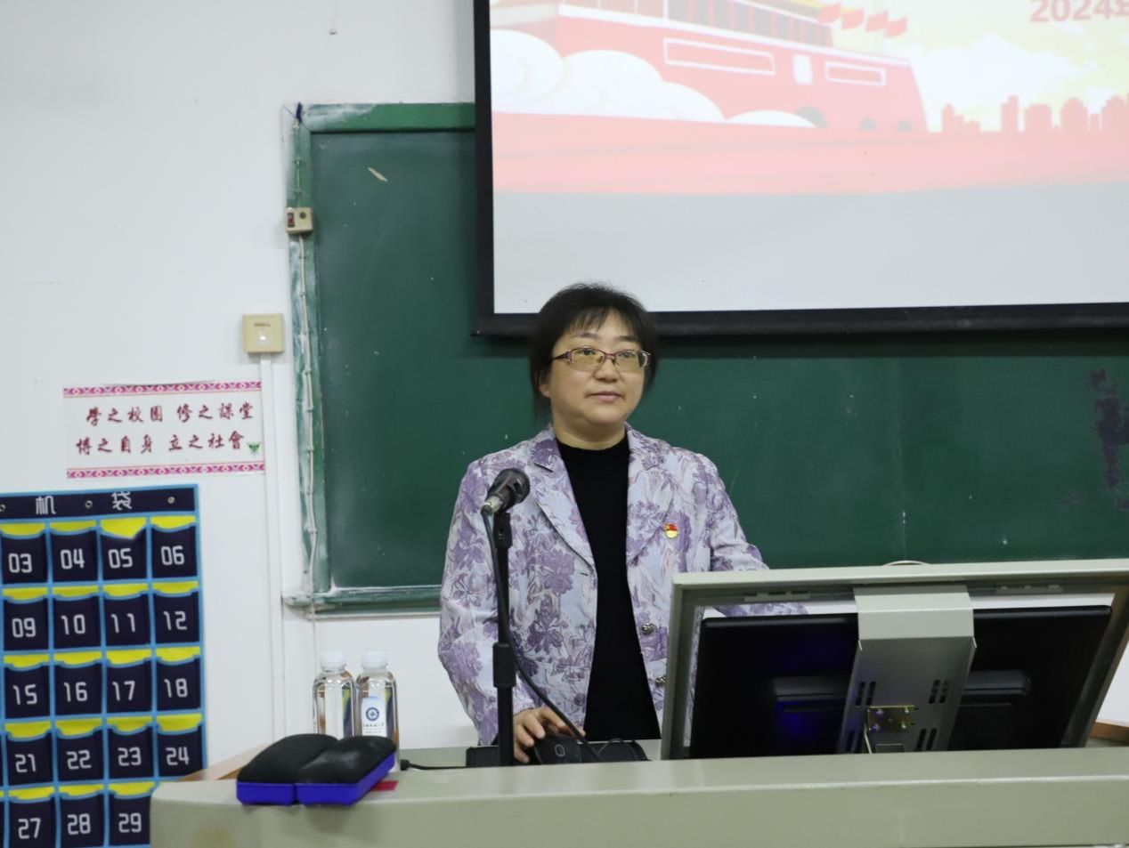 陆晓芹以老红歌为引,聚焦于党的根本宗旨,对党的根本宗旨的定义、由来及坚持党的根本宗旨的重要意义进行详述。她表明中国共产党全心全意为人民服务的根本宗旨是我们崇高的精神和行为准则,鼓励同学们努力学习科学文化知识,以雷锋精神为指引,提高思想觉悟。同时,她向入党积极分子提出建议:要知行合一,努力践行党的根本宗旨,不忘初心,牢记使命,提升“听说读写”专业能力,培养核心竞争力,提高为人民服务的能力。