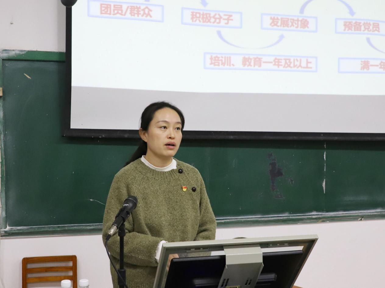 何山燕从中国共产党的性质、组织制度、党员发展工作三方面开展教学讲授。她结合历史事实,向入党积极分子们深入解读中国共产党的性质,对“两个先锋队”的内涵展开详细阐释,并表示中国共产党是中国特色社会主义事业的领导核心。此外,她还着重强调党性修养,希望同学们能够不断加强理论修养和作风修养,积极向党组织靠拢。