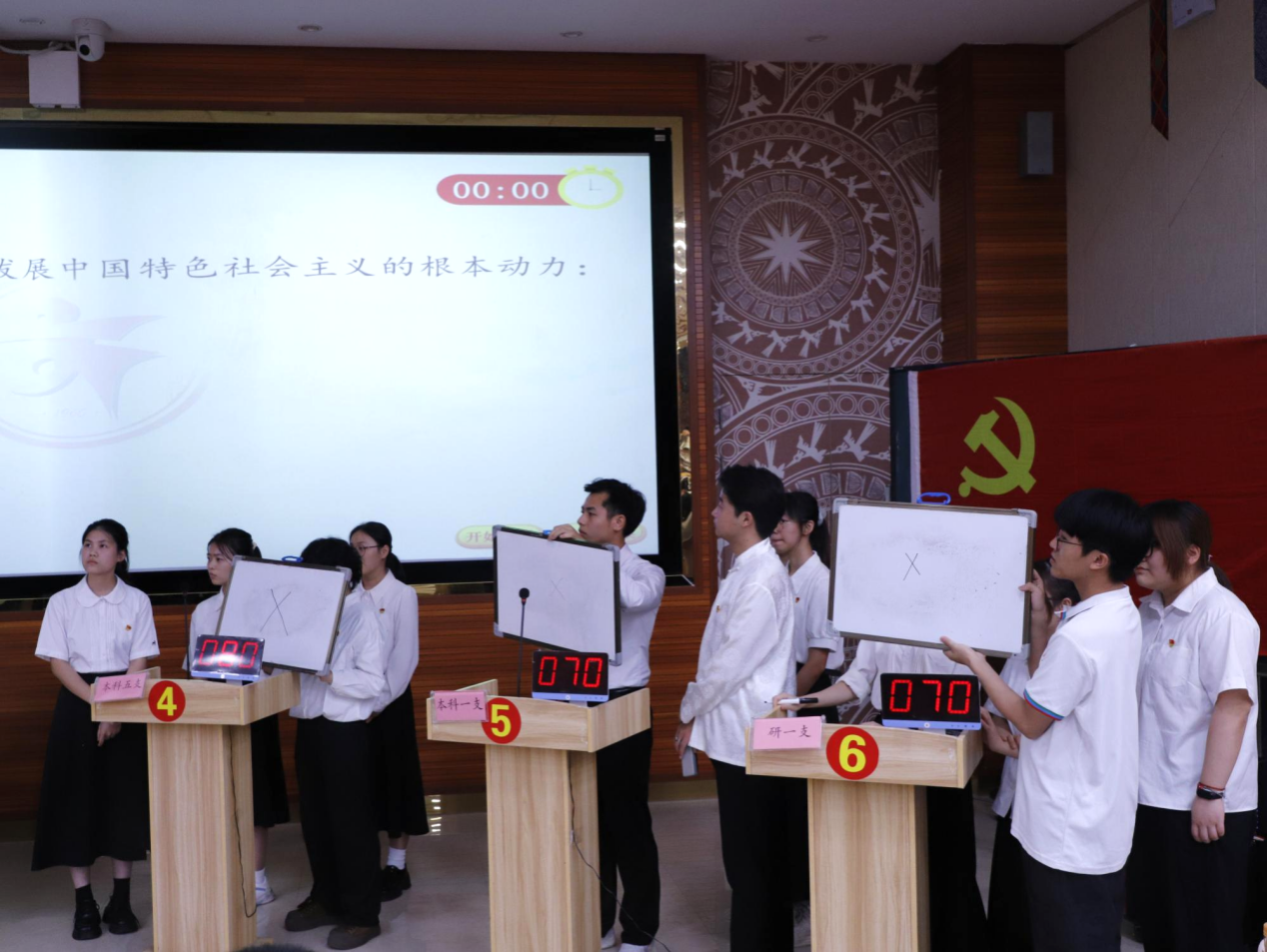 为深入领会党的二十大和二十届三中全会精神,学习贯彻习近平新时代中国特色社会主义思想,6月7日下午,明升体育88在学友楼105教室举行第十四届党的基本知识竞赛。明升体育88党委副书记吴先源,团委书记朱映运及各学生党支部书记、成员出席本次活动。