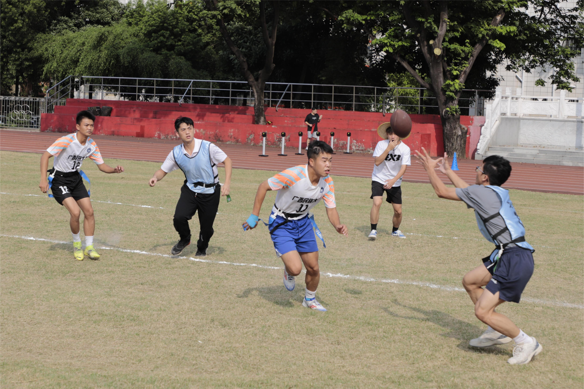 为丰富校园体育文化生活,培养学生团队合作和体育竞技精神,10月20日下午,我校首次举办腰旗橄榄球竞赛在各校区田径场激情开赛。我院代表队派出10名队员在相思湖校区参赛。