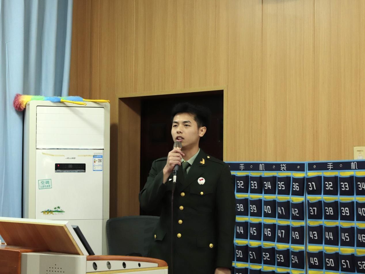 覃志林从为什么要参军、参军带来的改变以及军营生活里的趣事三个方面进行分享。他表示,军旅生活锻炼了他的意志品质,与战友建立了深厚的情谊。军旅生活是不可多得的人生体验,覃志林鼓励我院学子勇担使命,积极参军报国,让青春之花在祖国边防绽放。