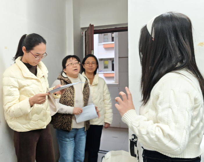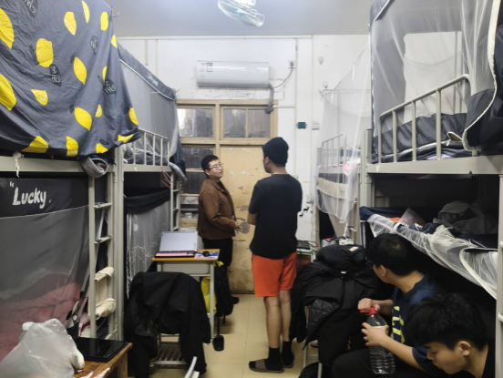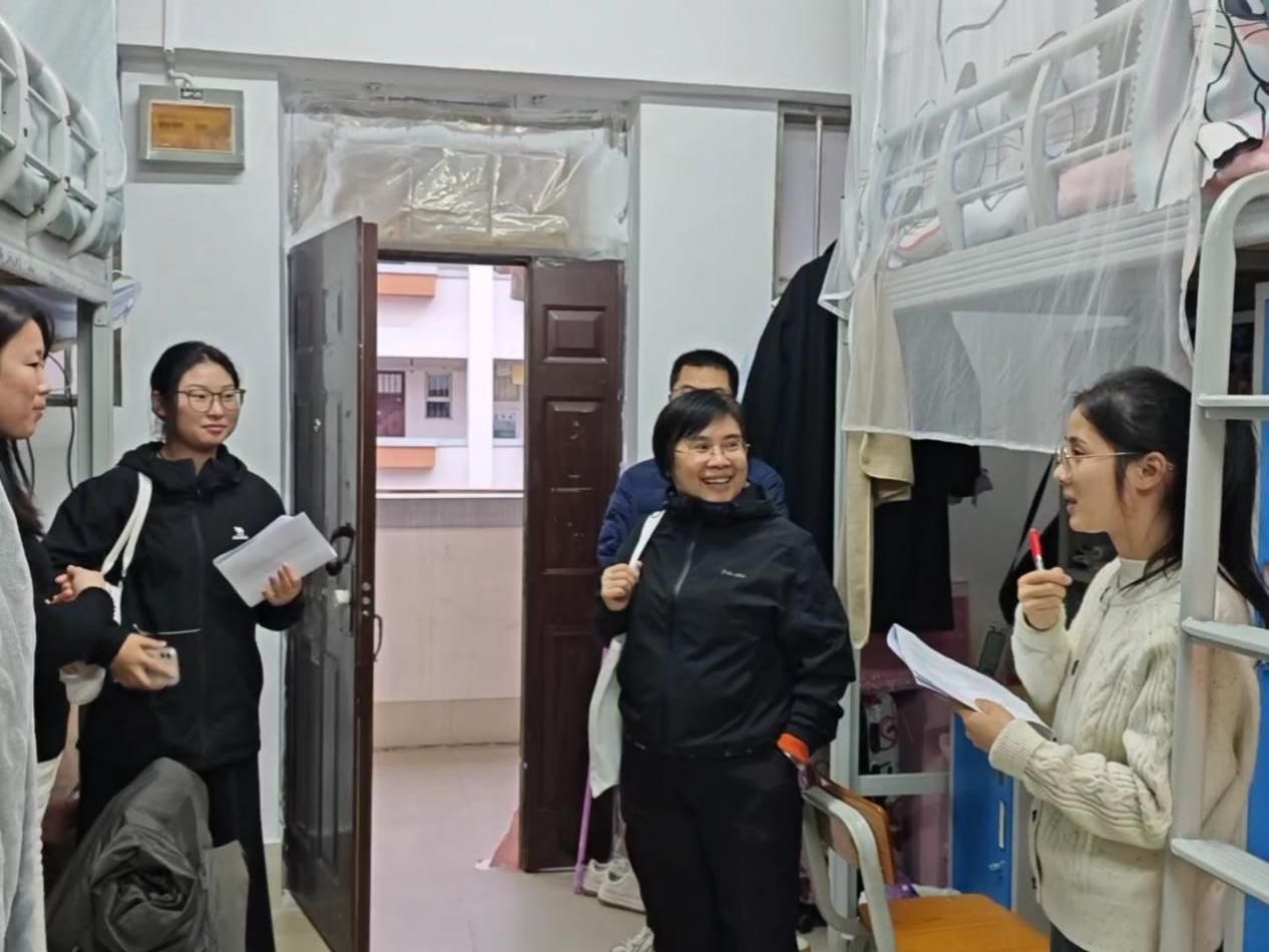 走访过程中,老师们重点检查寝室卫生环境、用电安全及消防设施,要求学生严格遵守宿舍管理规定,杜绝使用违规电器,确保人身与财产安全。老师们提醒学生,春季是流感高发期需注意个人卫生,保持宿舍通风,共同营造整洁、和谐的居住氛围。