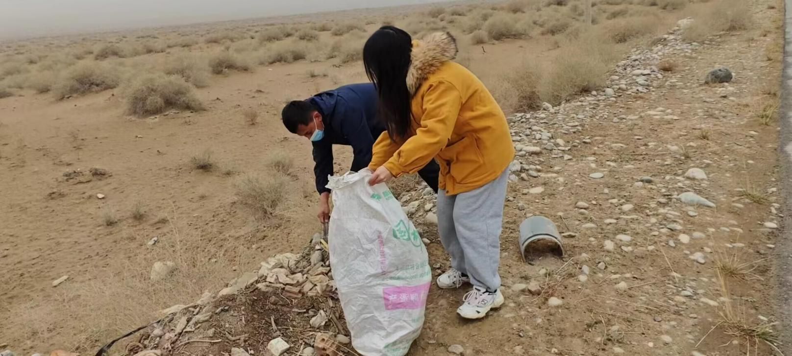 韩媛媛帮助老乡捡拾戈壁垃圾