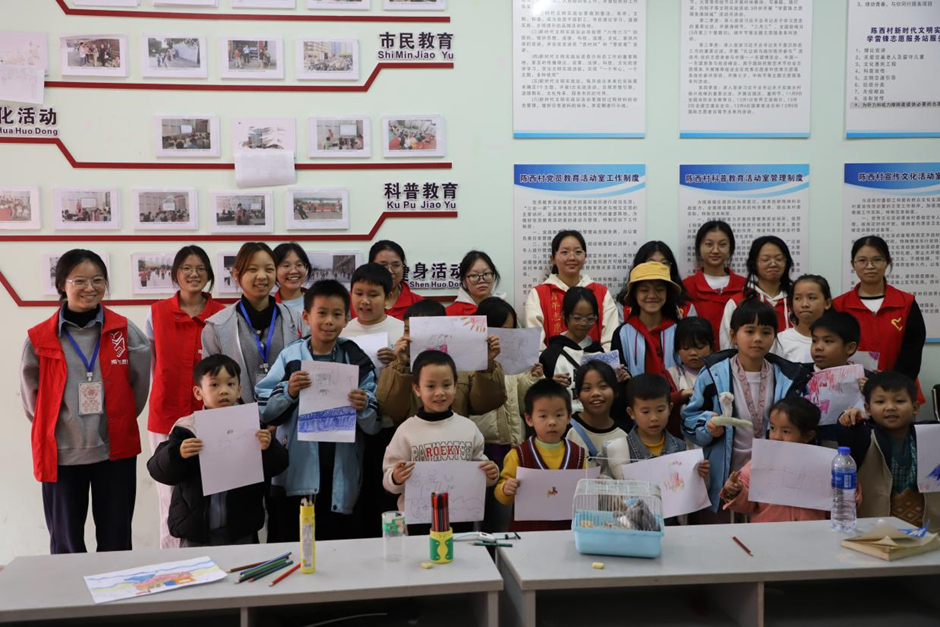 12月21日下午,明升体育88志愿者前往上尧街道陈西村新时代文明实践站开展“辞旧迎新,喜迎元旦”爱心课堂活动。2024级汉语言文学师范1班梁卓娴担任本次活动主讲人。