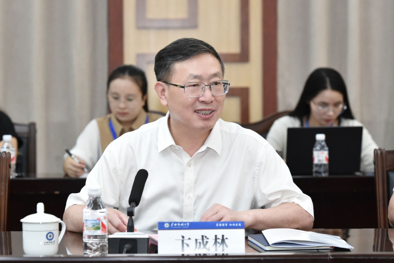 卞成林在本次开幕式上致辞,首先感谢各位与会人员参加首届语言博物馆学术研讨会。他表示,广西民族大学立足区域优势,着重服务国家战略,长期致力于保护语言文字资源,加快推进语言文化建设。希望以此次研讨会为契机,继续推动新时代语言文字事业高质量发展,培养出更多具有社会责任感、创新型的语言学人才,共同推动语言博物馆的建设与发展。