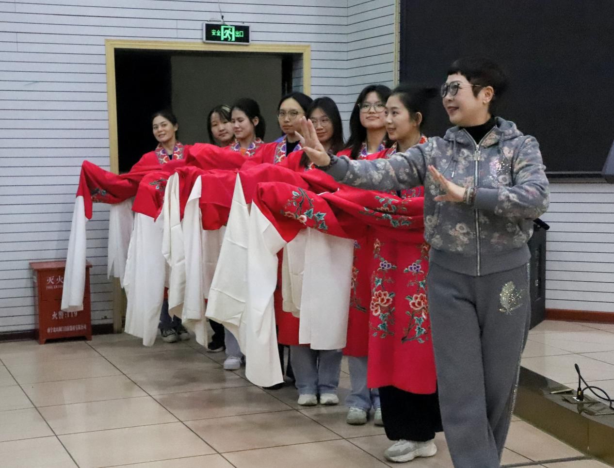 梁素梅现场教学水袖(右一)