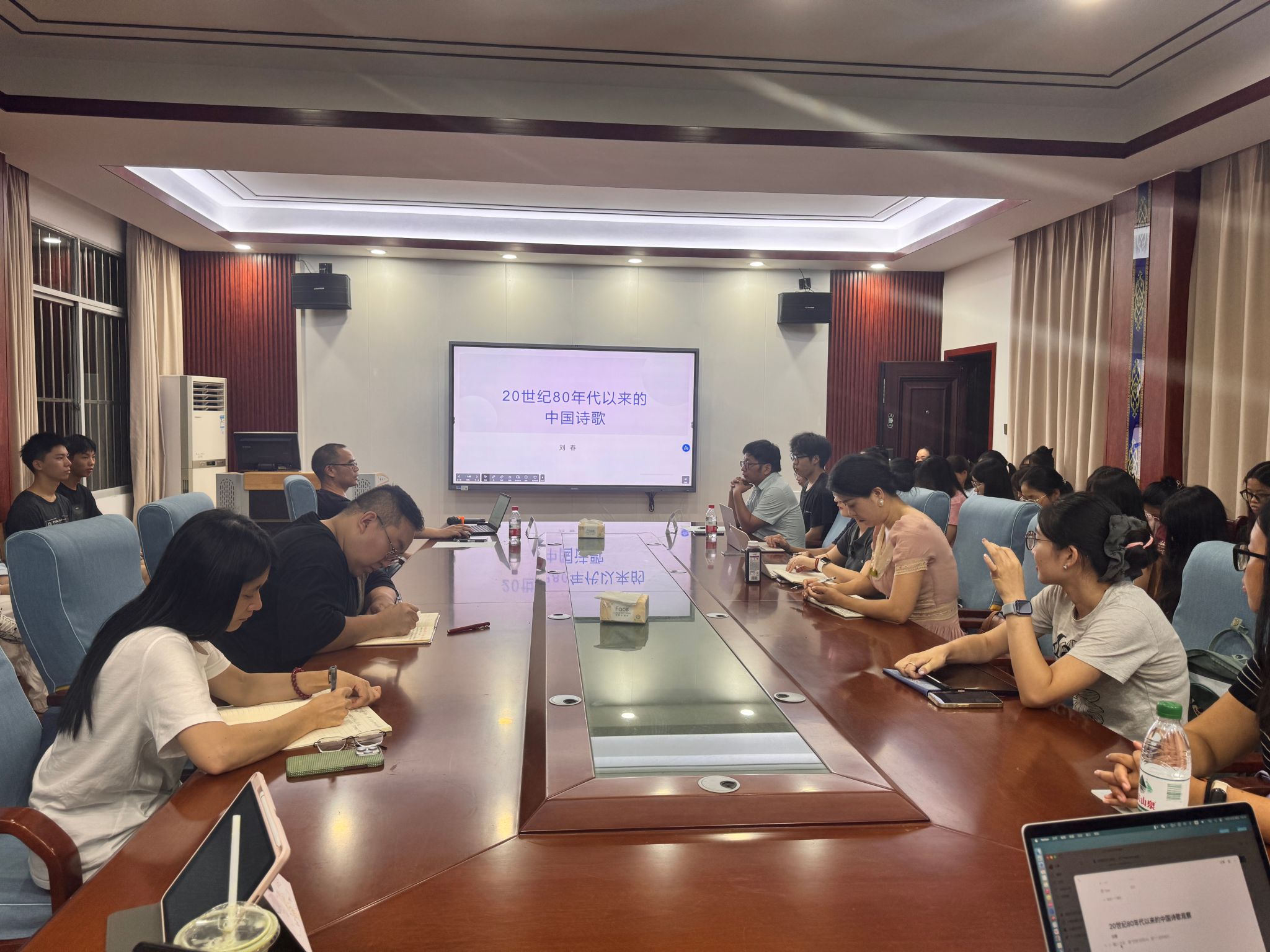 10月10日晚,“20世纪80年代以来的中国诗歌观察”讲座在博文楼204举行。本次讲座特邀中国作家协会会员、中国诗歌学会理事、广西作家协会副主席、广西明升体育88副院长刘春担任主讲,陈爱中教授主持。